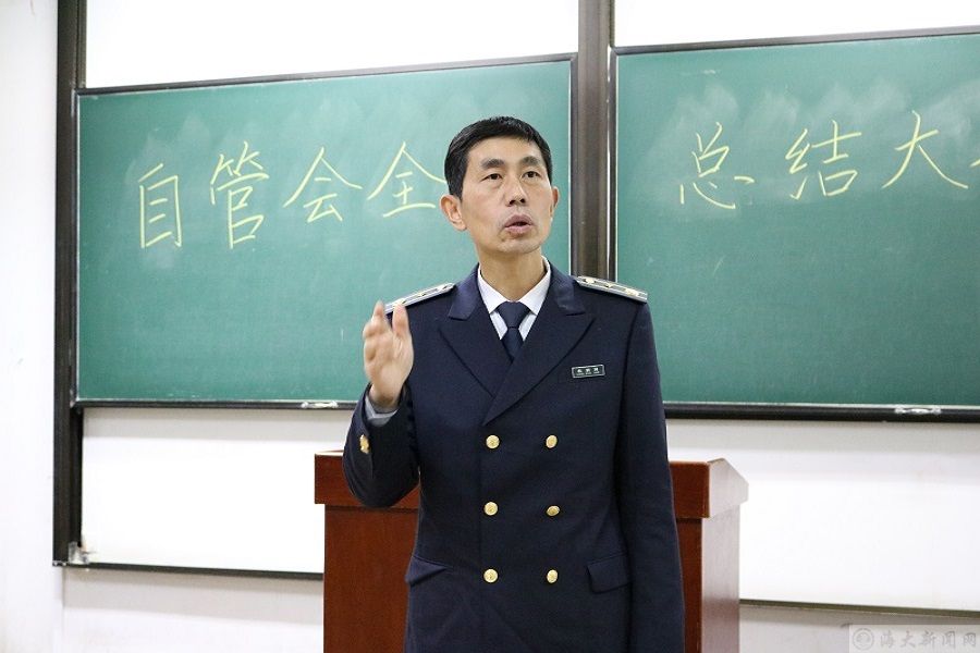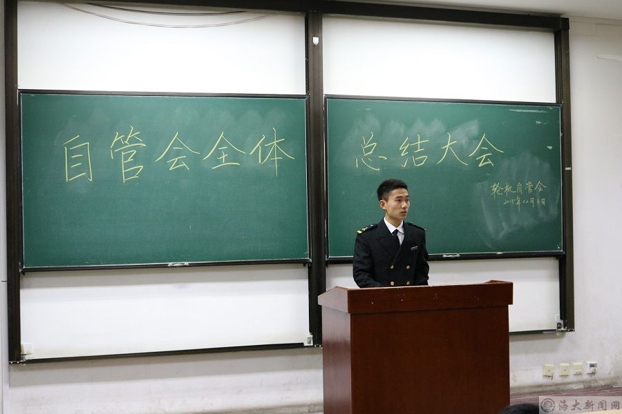 首先,各部部长对前一阶段的工作进行了简要汇报;接下来,轮机自管会主席范昊天对开学后的工作进行了总结讲评;随后,受到表扬的优秀个人走上前台与大家见面并逐一发表感言。他们发自肺腑、个性鲜明的发言不时获得同学们的掌声。最后,轮机大队副大队长程朝阳老师与大家进行了深入交流。他首先代表学院和大队领导对受到表扬的同学表示祝贺,对轮机自管会全体成员的辛勤工作和付出表示感谢,随后就如何理解工作价值、怎样在轮机自管会更快更好地成长与大家时行了深入、有效的交流,并对下一阶段的工作提出了希望和要求。队长亲切、富有哲理的讲话引发了大家强烈的共鸣,会场不时爆发出热烈的掌声。