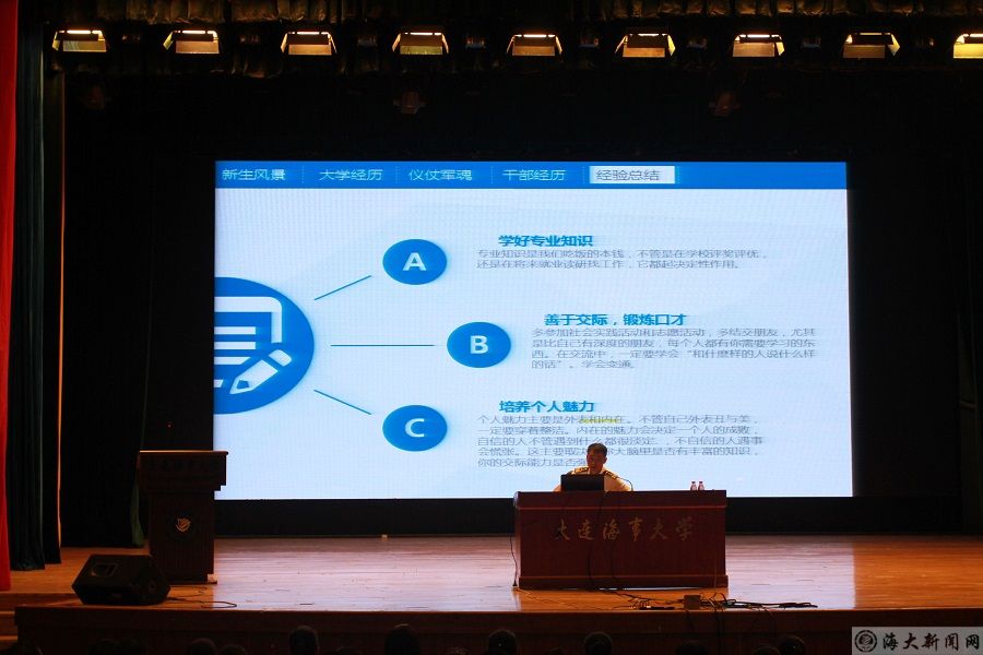 9月4日,英国威廉希尔公司官网于东山礼堂举行了主题为“我的大学生活”的轮机优秀学子事迹报告会。学院邀请徐海洋,徐智斌,赵宁,张志飞四位优秀学生同新生分享他们的大学学习和生活经历。