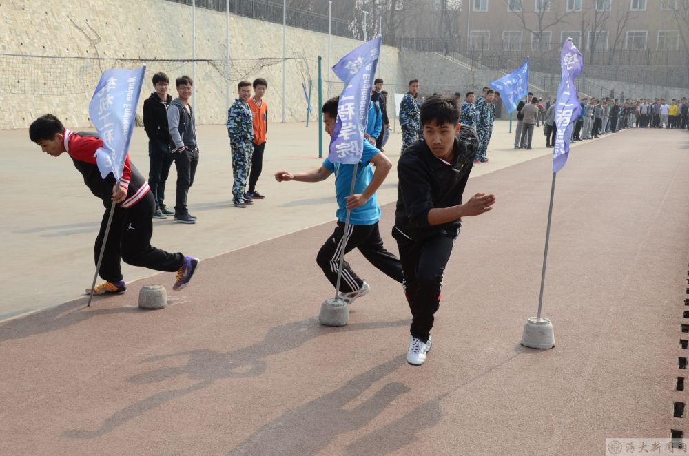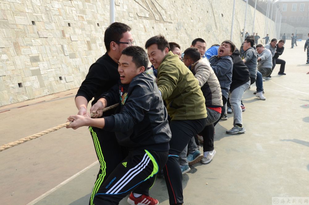 运动会伊始,由轮机大队大队长赵帅在开幕式上致辞,宣布本次趣味运动会正式开幕。紧接着,参加本次运动会拔河、六人七足、百米折返跑、托球大战和点球大战等项目的各中队运动员到达预先指定好的场地,热烈而有序的开始了各项比赛。赛场上,各个项目如火如荼的开展着,各中队同学们全力以赴,口号声此起彼伏,不绝于耳。六人七足分赛里,各中队代表队各显神通,奋力冲刺;拔河场上,同学们喊声震天,齐心协力。这些趣味十足的项目受到参赛同学的普遍欢迎,参赛的运动员在赛场上挥洒着汗水,也享受着运动带来的快乐。比赛后期,到场的学院领导和指导员也组建了队伍,参加到各项比赛中,为趣味运动会增添了许多活力。此外,比赛场中由学生组建的全体裁判员、工作人员在全场比赛中都坚守岗位、热情服务,确保了各项比赛安全、顺利的进行。