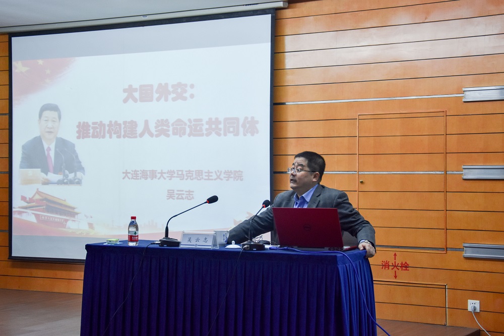 开班典礼结束后,吴云志教授围绕“党的十九大精神”进行了主题为《大国外交:构建人类命运共同体》的第一讲授课,吴教授从“形成发展、理论创新、面临的挑战和实现路径”等四个方面阐释了人类命运共同体思想,期间他结合中美贸易战、美英法空袭叙利亚、韩朝首脑会晤等时事热点话题,通过幽默风趣的讲解使同学们了解了中国目前所处的复杂的国际局势,理解了“构建人类命运共同体”的现实意义,学员们备受启发,获益匪浅。