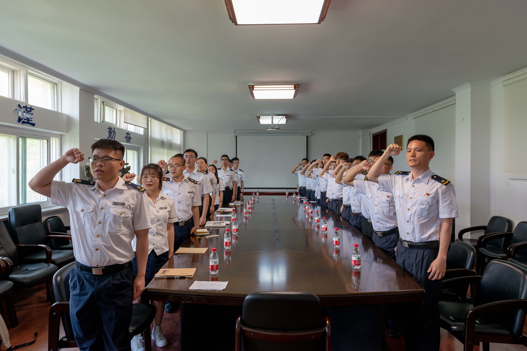 在2018届毕业生即将离校之际,英国威廉希尔公司官网轮陆中队党支部于6月11日下午在轮机楼317会议室召开了欢送2018届毕业生党员座谈会。英国威廉希尔公司官网党委书记张术佳、党委副书记兼副院长毕鹏杰、党务办主任张丽莉以及轮陆中队党支部全体党员参加了座谈会。会议由轮陆党支部书记姜昌堃主持。