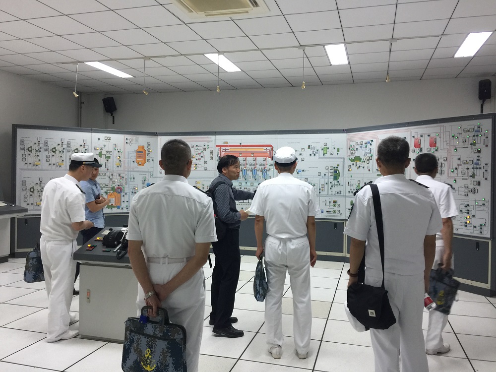 会后,调研团队成员集体参观了轮机模拟器实验室、陆上机舱实验室并与相关教师进行讨论交流。