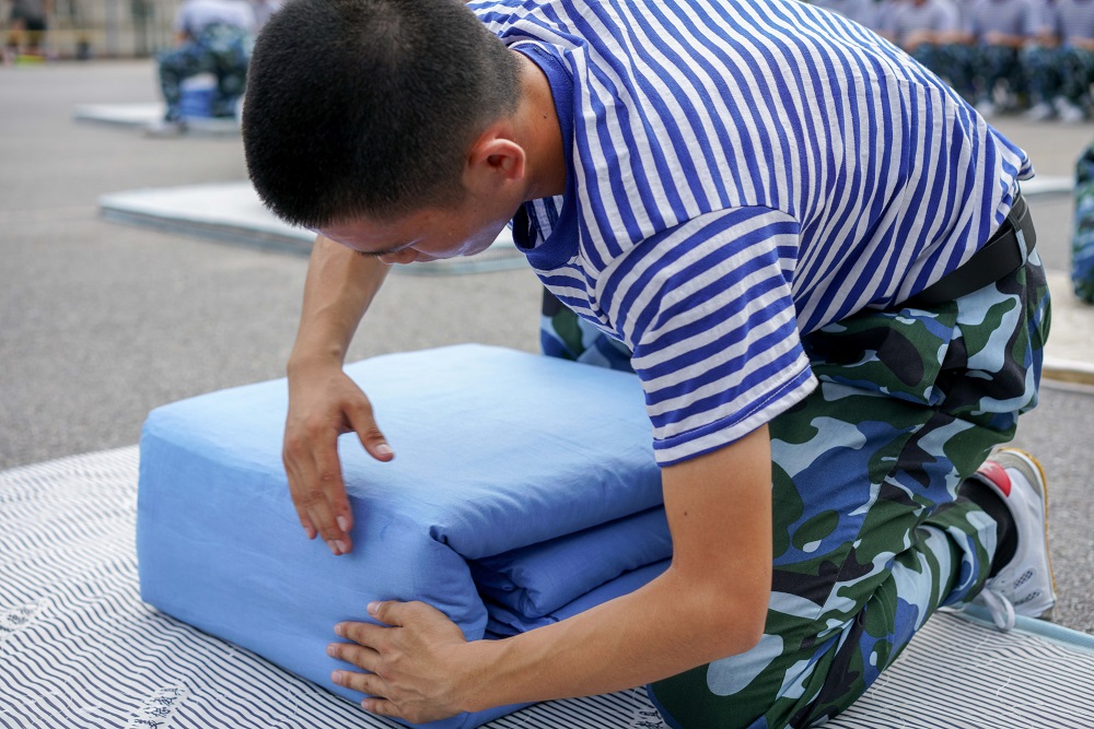 首先进行的成果汇报表演分为会操展演和内务风采展示两方面。会操展演中,同学们整齐的动作、抖擞的精神和整个团队的威武气势,一次次赢得了在场老师和同学的掌声。齐步、正步、停止间转法等一系列整齐划一的军人队列动作展现了新生骨干培训班的训练成效。内务展示环节,参演同学用娴熟的手法在极短的时间内完成了被褥的整理,展现了新海大人精益求精、力争上游的优秀品质。