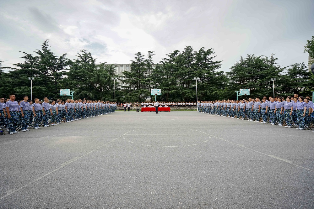 学生工作部半军事管理办公室主任陈伟向获表彰的优秀学员代表颁奖。