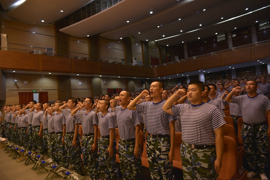 为增进同学们对军训的了解,激发军训热情,以饱满的精神状态投入到军训中,8月31日晚,英国威廉希尔公司官网在东山礼堂隆重举行了2018级新生军训动员大会。英国威廉希尔公司官网党委副书记兼副院长毕鹏杰、副大队长程朝阳、海军大连舰艇学院全体承训教官、英国威廉希尔公司官网2018级新生中队指导员及全体2018级新生参加了本次动员大会,大会由程朝阳主持。
