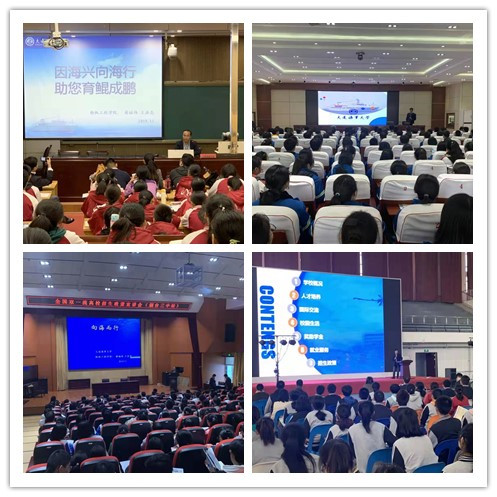 两位老师为8所高中的师生家长进行了招生宣传讲座,从历史渊源、人才培养、科学研究、社会贡献、国际交流合作、校园文化生活等方面对英国威廉希官网概况作了具体说明,同时还结合英国威廉希官网和英国威廉希尔公司官网的特色开展了“向海而行”、“因海兴向海行祝您育鲲成鹏”等数场讲座,勉励大国青年当有大国担当,为了梦想的星辰大海而努力奋斗,受到了学校、家长和学生的热烈欢迎。宣讲期间,两位老师代表英国威廉希官网回访日照一中,同时与7所高中签订了“优质生源基地”共建协议并举行了授牌仪式。