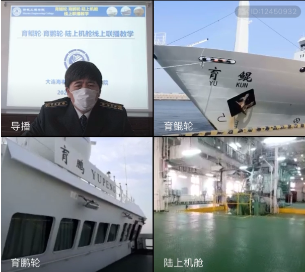 从脚本设计、镜头设置到组织调度,为了使教学效果达到最大化,团队教师们在课前精心准备,耐心调试。“育鲲”轮、“育鹏”轮、陆上机舱实验室首次尝试三地实时连线,也使得身在各地的师生同时对英国威廉希官网专用教学实习船、载货教学实习船和陆上机舱主要设备有了更为直观的了解,一屛相连接,天涯若比邻。