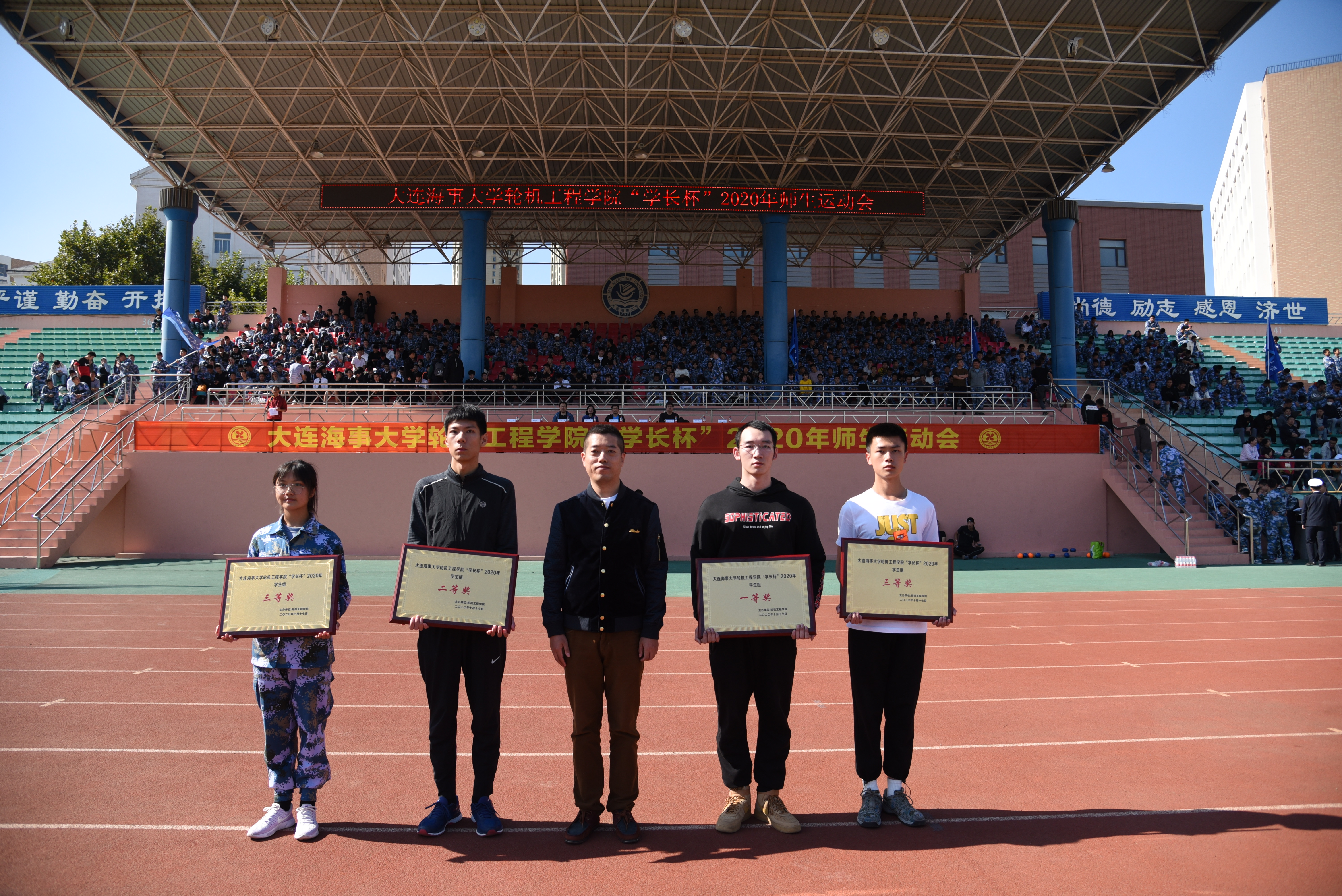 经过一上午紧张激烈的角逐,运动会顺利落下帷幕。闭幕式上,副院长王宝军为教工组获奖队伍颁奖,轮机2001级校友代表张如为学生组获奖队伍颁奖。本届运动会增进了学院师生“团结、奋进、拼搏、进取”的团队精神,激发了全院师生的学习斗志和工作热情,取得了预期的效果。