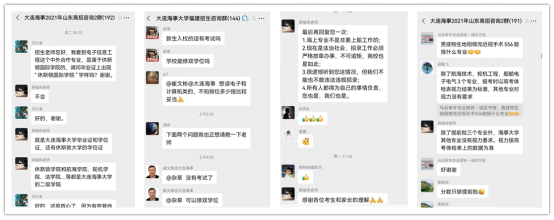 为做好高招咨询会期间及后续志愿填报阶段的跟踪服务,根据学校招办的统一工作安排,学院积极组织经验丰富的教师参与线上招生咨询群的答疑工作,其中针对招生计划较多的山东地区共建立6个微信咨询群,入群最大人数合计超过1000人;福建地区入群的最大人数也达到近200人,甘肃地区入群的最大人数达到近100人。截止到7月6日,学院负责的3个省外责任区域招生咨询群内,针对考生和家长关心的关于提前批次体检要求、入校后转专业政策、毕业保研比例、就业方向、中外合作办学毕业证书等方面的问题答复共有近2万条,各工作组老师们及时专业的解答得到了群内成员的一致认可。招生录取期间,学院将继续安排专人做好招生工作咨询群的维护工作。