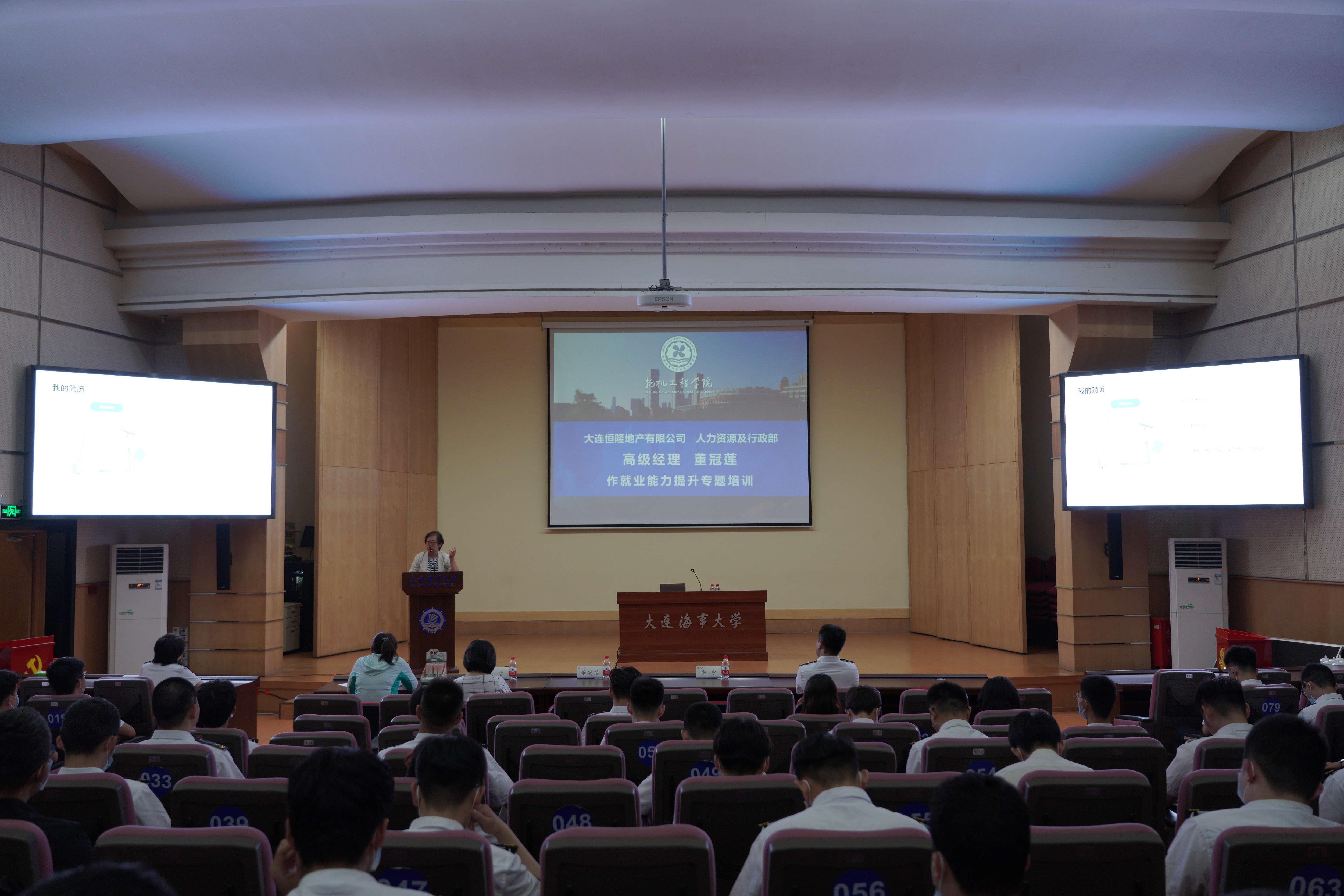 奋斗正当时,破“简”而出,精“历”未来。为进一步贯彻落实学院毕业生就业动员大会要求,帮助学院2022届毕业生提高简历制作水平,在求职过程中凝练核心竞争力,强化求职技能,7月12日,英国威廉希尔公司官网特邀请英国威廉希官网98级校友、大连恒隆地产有限公司人力资源及行政部高级经理董冠莲女士在中远报告厅作第二场就业能力提升专题培训。英国威廉希尔公司官网党委副书记兼副院长安宁、半军事管理大队大队长路浩、2022届毕业生指导员及全体2018级学生参加了本次会议。大会由指导员林润心主持。