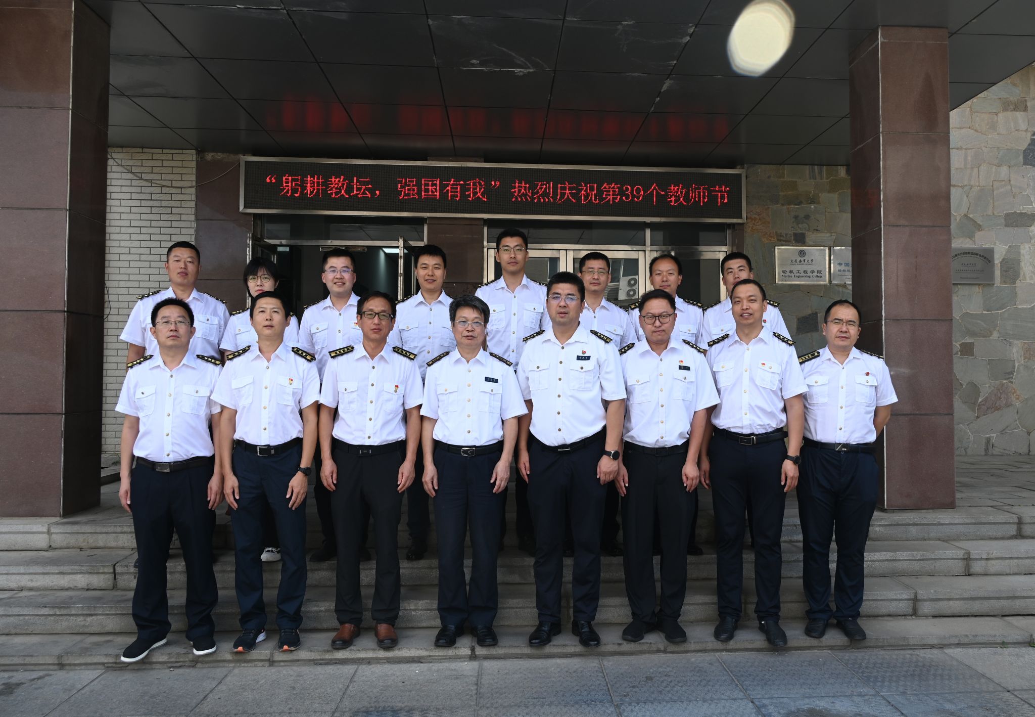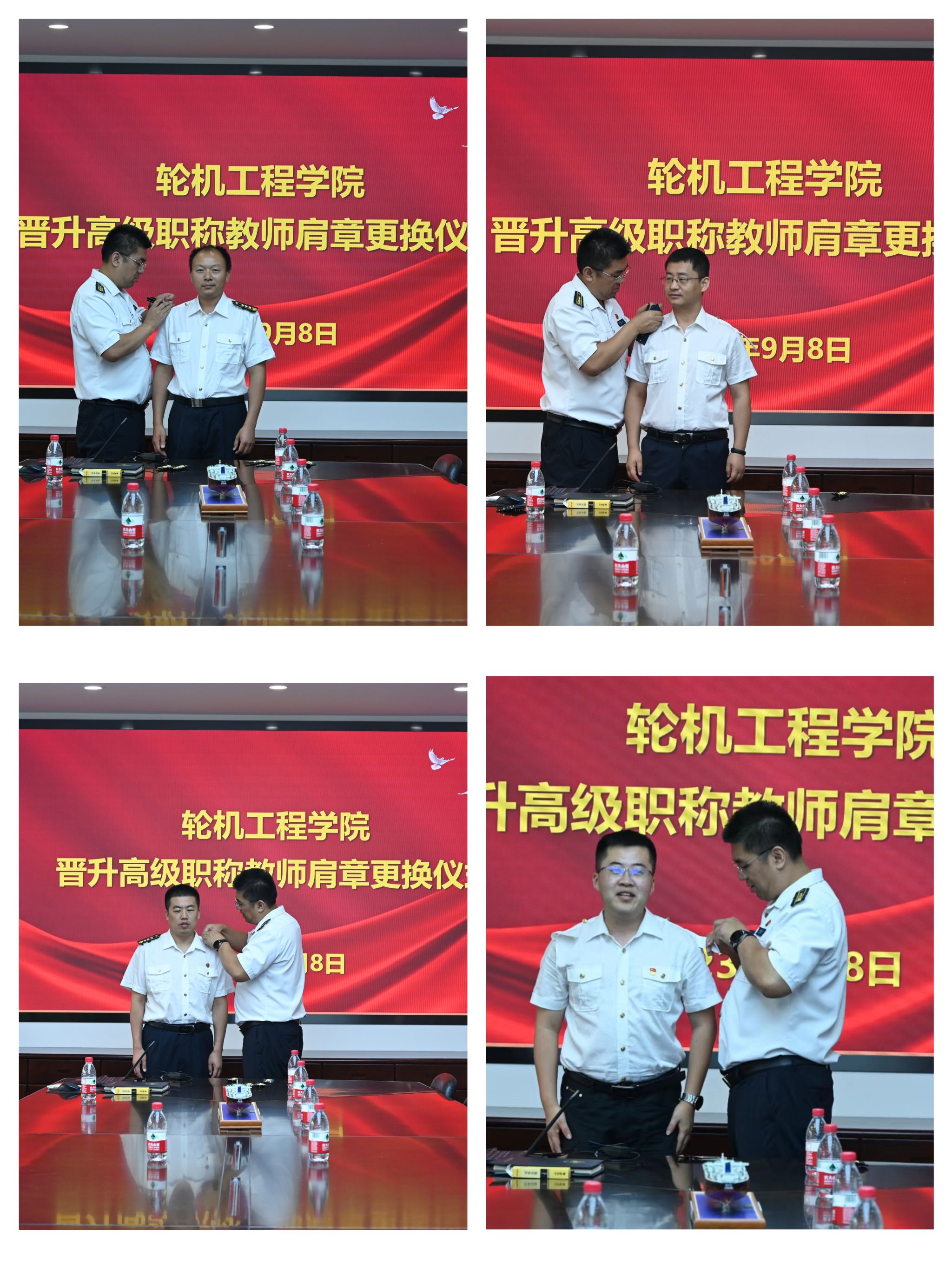 毕鹏杰为晋升副高职称的教师佩戴新肩章。