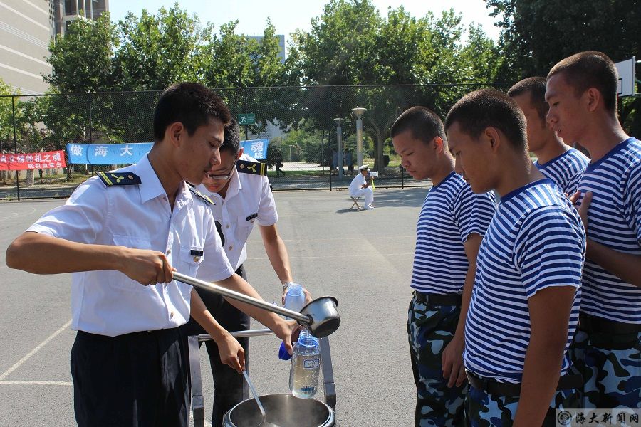 烈日炎炎,新生在酷暑中进行训练。在休息期间,导员带领几个老生骨干抬来绿豆汤,为新生解暑。整个发放场面井然有序,新生骨干带领大家表达了对指导员以及老生骨干们的谢意。在大家喝绿豆汤的同时,指导员以及老生骨干与新生进行了交流,新生解决了不少困扰自己的问题,也表示在以后的训练中会更加努力。最后,指导员们表示以后会经常有此类的活动,也希望同学们有学院作为坚强后盾,更好地完成军训任务。