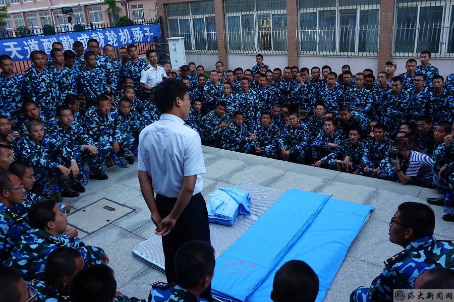 负责教学的指导员张亚培首先选好教学场地,设置好教学工具,之后各中队负责人将同学们带到指定场地,紧接着同学们分四个批次,按顺序围在教学场地周围观摩学习。指导员按照叠被的流程进行现场示范,每一个环节结束,都会请几个同学实地操作感受导员的手法。当现场示范环节结束后,导员又教给了同学们叠被的一些技巧,同时叮嘱同学们叠被不是一劳永逸的事情,擀被子,勾被角,只有长抓不懈才可以很好地保持住。经过仔细的教学后,同学们对导员表达了感谢,并表示受益很大。