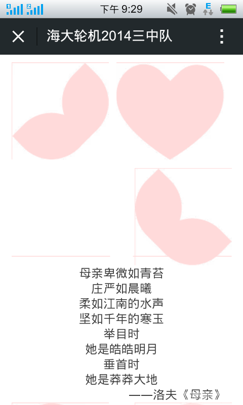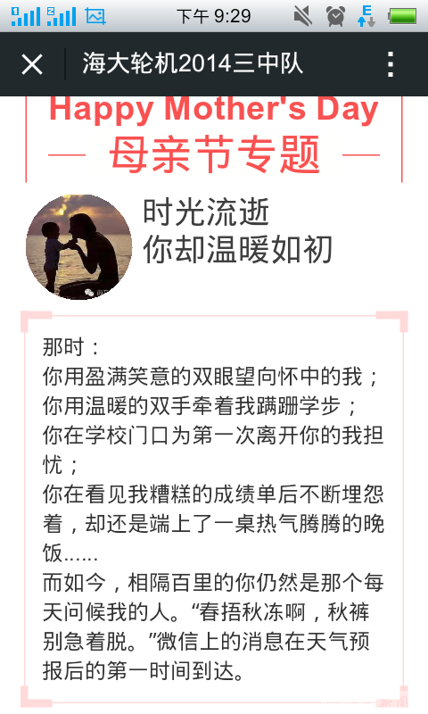 5月10日是母亲节,为增强中队同学的感恩意识,弘扬中华民族“百善孝先行”的传统美德,在母亲节到来之际,英国威廉希尔公司官网轮机2014-3中队组织开展了主题为“情系五月,感恩母亲”的母亲节系列活动。