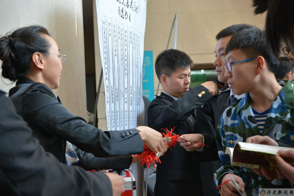 活动中,邢老师向同学们赠送了带有海大校训的书签,她强调“坚定、严谨、勤奋、开拓”的海大精神在书的海洋里都能被探索寻求到,之后,她又向同学们介绍了本次社科类图书展览会的目的和展出书籍所涵盖的领域。随后,同学们开始自由阅览本次书展所展出的书籍,他们还时不时的与老师进行交流,期间,邢老师和同学们还一起整理了书展现场。最后,邢老师对本次活动进行了总结,她希望每位同学都能以本次活动为起点和契机,好好学习,天天阅读,争取早日成为国家的栋梁之材。