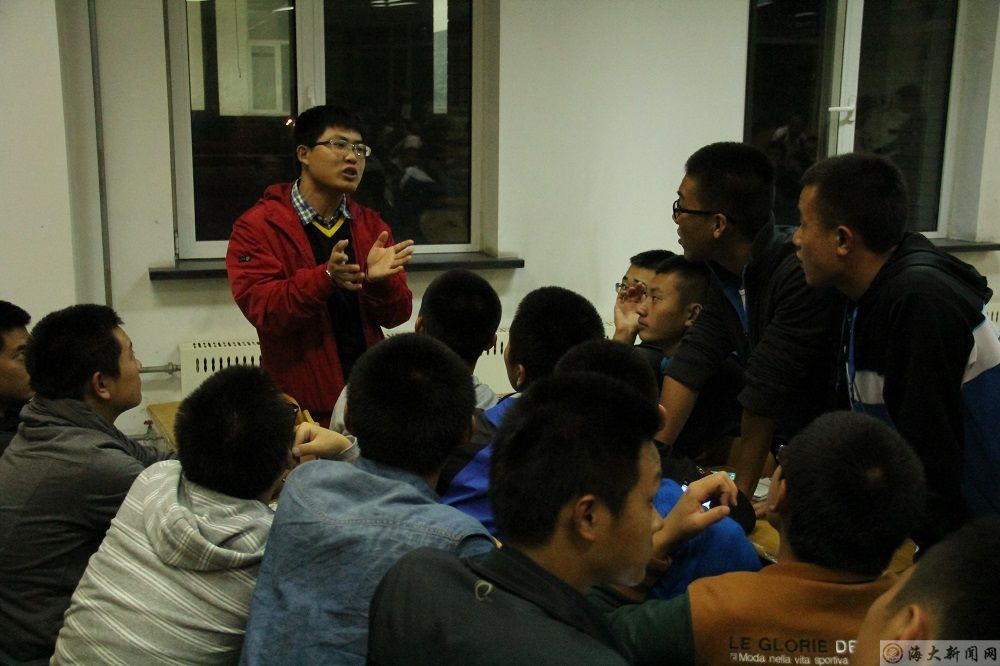 在见面会开始前,化鹏首先就中队日常事务工作发言,对各区队目前工作中所具备的优点和存在不足分别进行了讲评。随后,见面会正式开始,化鹏首先对各区队指导员助理情况及中队指导员助理工作的开展进行了简单介绍,接着指导员助理和各区队的同学进行了十分热烈且深入的交流。通过彼此间的互相沟通,同学们对轮机工程这个专业和日后的学习、生活有了更加全面的了解。最后,化鹏强调,各区队指导员助理和中队全体同学不仅要在学习上多交流,更要在生活中多帮助、多指导。