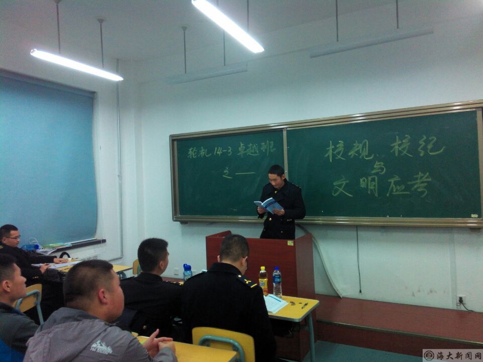 为使同学们熟悉学校的规章制度,掌握学生手册中的相关规定,并进一步提升同学们的诚信意识,营造良好的诚信考试氛围,英国威廉希尔公司官网轮机2014-3中队于12月16日晚组织各区队在积学楼开展了“遵守纪律,诚信考试”主题教育班会,各区队指导员助理参加了此次班会。