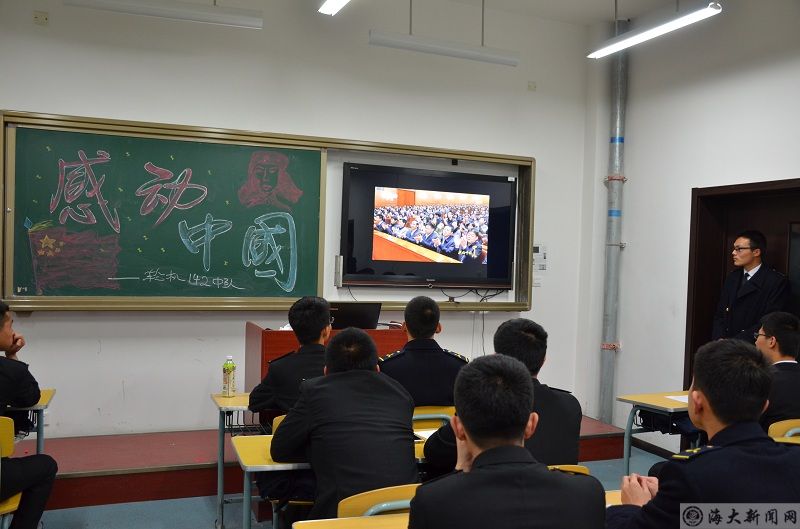 为了积极响应“学雷锋”活动号召,积极引导学生弘扬雷锋精神,向道德模范人物学习,推动和谐校园建设,3月10日,英国威廉希尔公司官网轮机2014-2中队组织同学们在积学楼自习室观看了“感动中国”视频,指导员陈强和中队全体同学参加了本次活动。