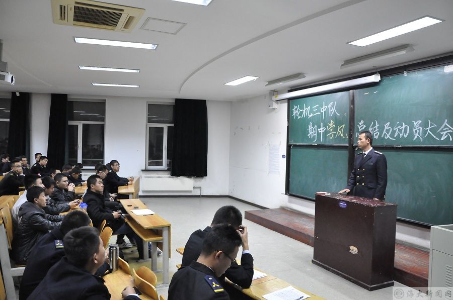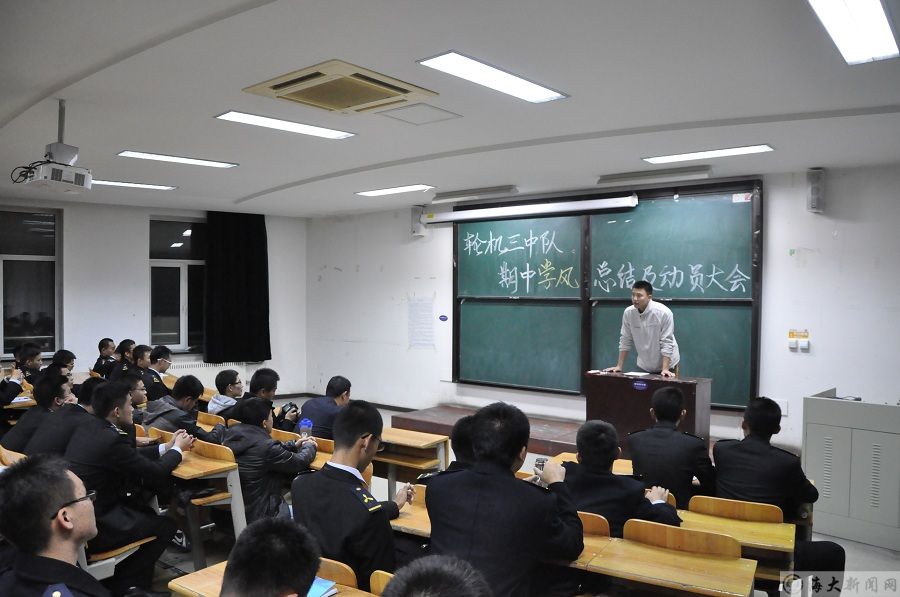 为总结前一阶段的学习经验,进一步提高同学们学习的积极性和主动性,营造良好的中队学风,英国威廉希尔公司官网轮机2014-3中队于11月26日晚在远航楼204教室组织召开了中队期中学风总结暨动员大会。指导员裴长盛、各区队指导员助理及中队全体同学参加了此次大会。