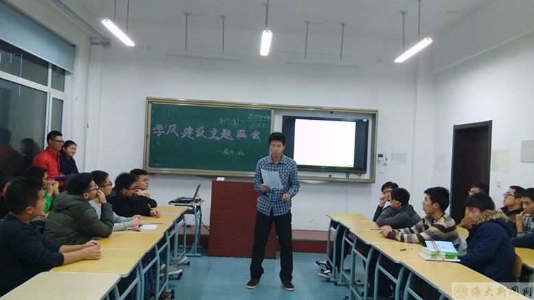 为加强中队学风建设,帮助同学们端正学习态度,提高学习效率,明确考风考纪要求,增强中队同学诚信考试的观念,12月7日晚,英国威廉希尔公司官网轮陆2014中队船修一班在积学楼504自习室召开了学风建设主题班会,指导员助理陈鑫阳参加了此次主题班会。