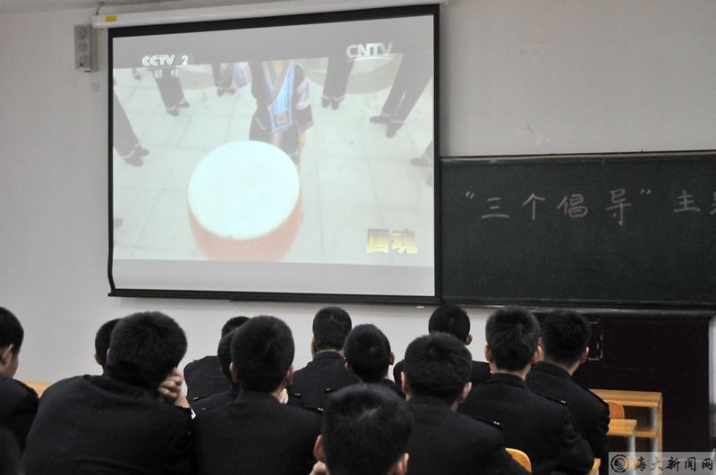 轮机2013-4中队船电1区队组织学生观看《国魂》