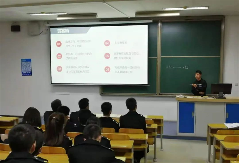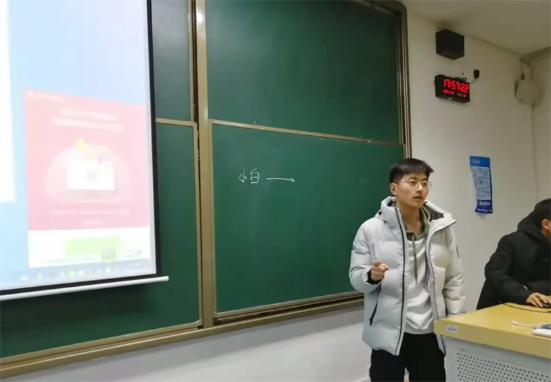 不同于之前两位学长的稳重沉着,曾武学长身上焕发着一种别样的朝气——虽然是2018级的学长,但他与在座的大多数同学一样,刚满18周岁,但他已经成为了让同龄大一同学们仰慕的“科创大佬”,拿到了不同级别赛事多项重要奖项。首先,曾武向大家介绍了大学生可以参与的竞赛类别、等级以及相关政策,接着,又向大家讲述了如何对自己参报项目进行加工和包装,以达到更好的呈现效果。最后,曾武学长向大家分享自己在大学生活的经历,鼓励同学们多尝试、多经历,让大学生活充实而丰富。
