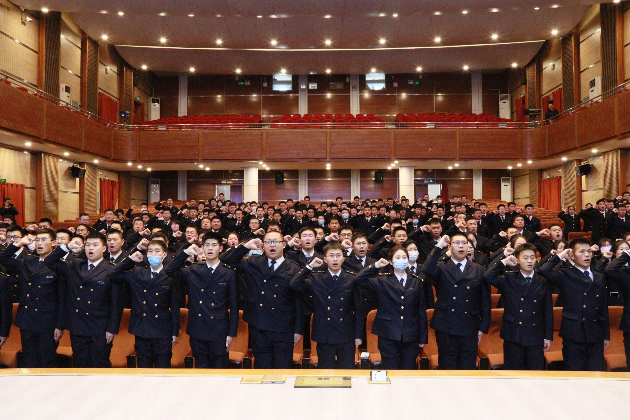 在学生干部代表的带领下,全体学生干部举起右拳进行宣誓,对努力践行干部责任作出庄严承诺。