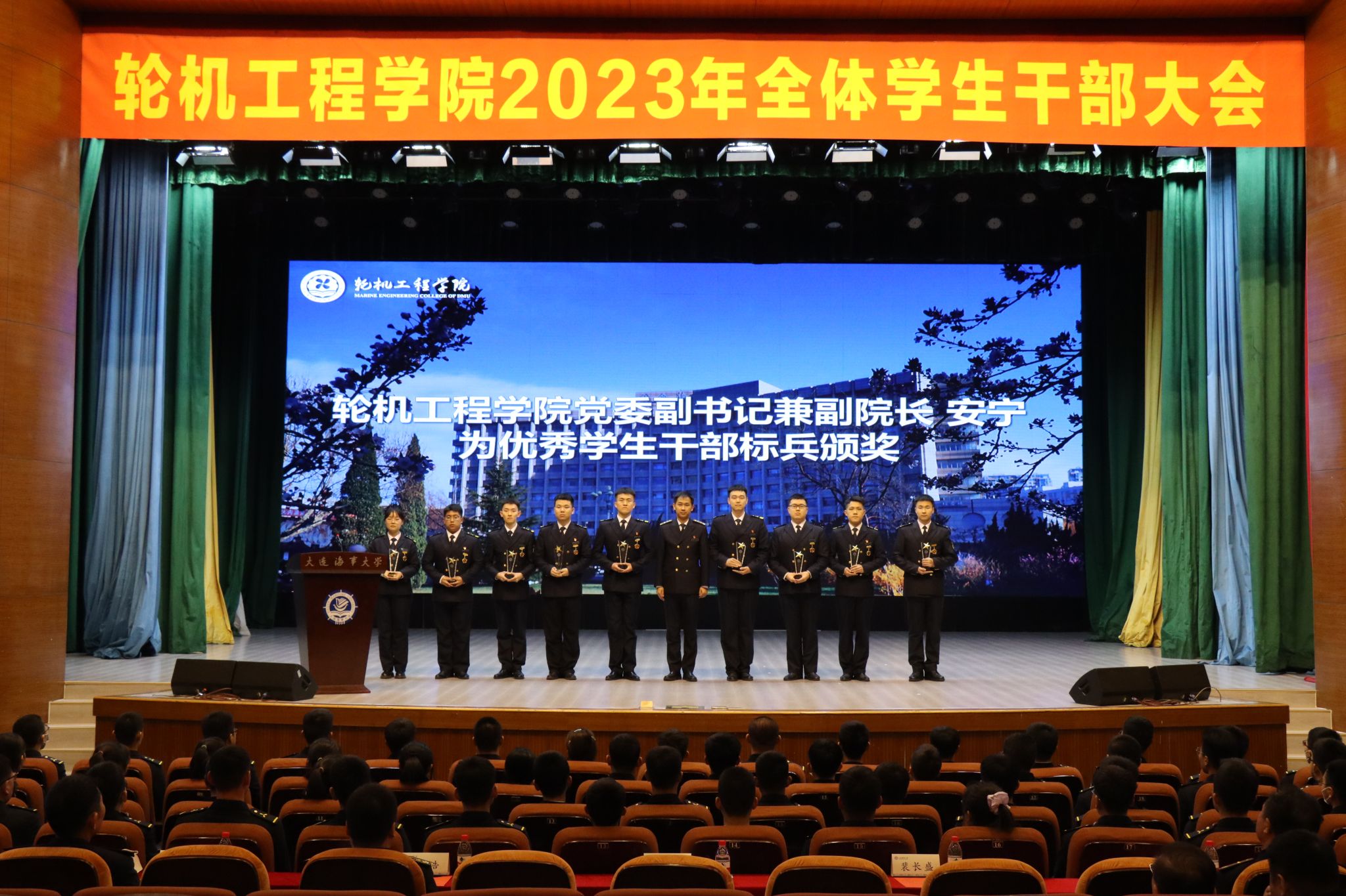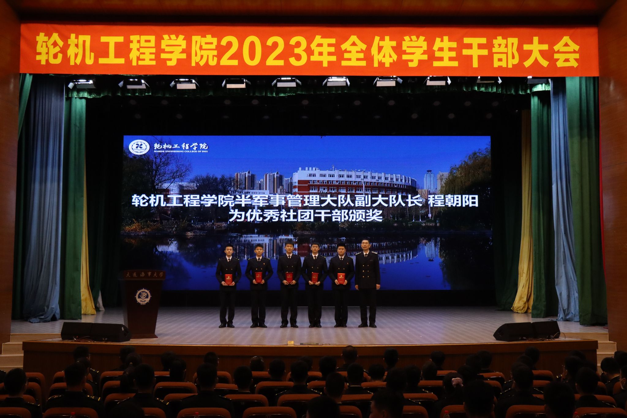 学院对过去一年来涌现出来的优秀学生干部进行表彰。安宁为学院优秀学生干部标兵颁奖,路浩为学院优秀学生干部奖学金获得者颁奖,程朝阳为学院优秀社团干部代表颁奖。